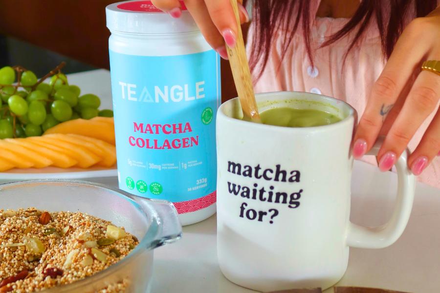 - Add 1-2 scoops of Teangle's Matcha Collagen to your favorite mug